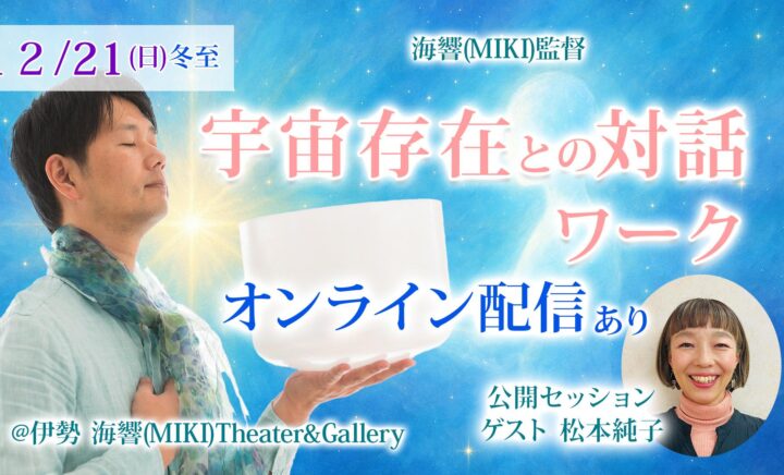 3月20日(金・祝) 三重(伊勢ギャラリー)海響(MIKI)監督スペシャルワーク 公開セッションゲスト 松本純子 & 映画「愛の地球(ホシ)へⅢ」上映会