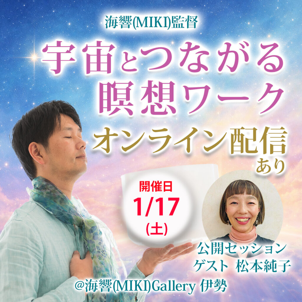 1月17日(土) 三重(伊勢ギャラリー)海響(MIKI)監督スペシャルワーク「宇宙とつながる瞑想ワーク」 公開セッションゲスト 松本純子 & 映画「愛の地球(ホシ)へⅢ」上映会